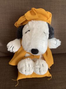 お祝いの席では、黄色いちゃんちゃんとを着るのを嫌がったので、代わりにスヌーピーさんに着てもらいました(笑)
